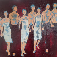 Keywords: movement painting, French contemporary art, dance inspired artwork, Corinne Malfreyt canvas, expressive ensemble composition